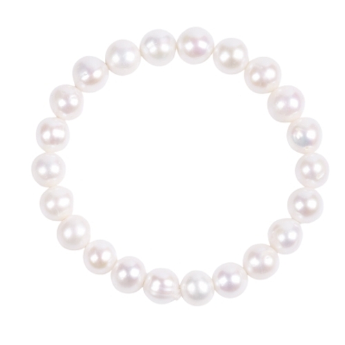 Armband Edelsteen Zoetwaterparel Rond Wit Kralen 9-10mm