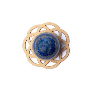 Uit MDF lasergesneden (edelsteen) bol voetje, in de vorm van een Seed of Life. Geschikt om edelsteen- of orgonietbollen op te plaatsen.