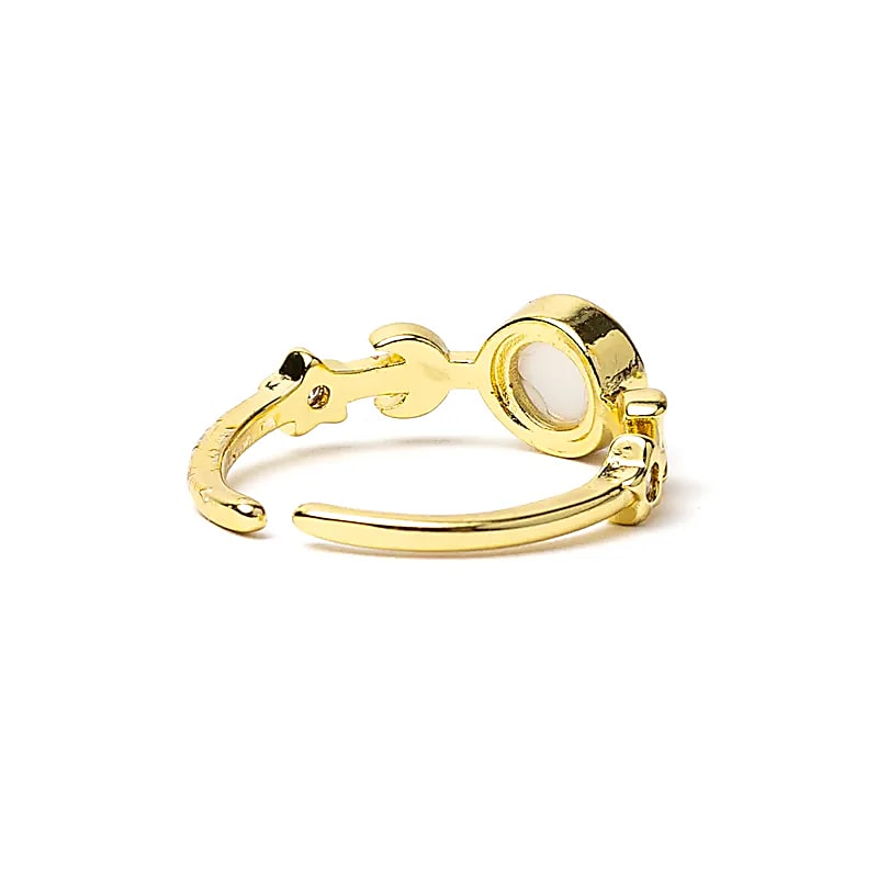 Een verstelbare ring met maanfasen-motief, gezet met witte agaat.