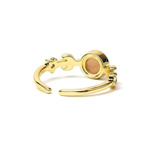 Een verstelbare ring met maanfasen-motief, gezet met zonnesteen.