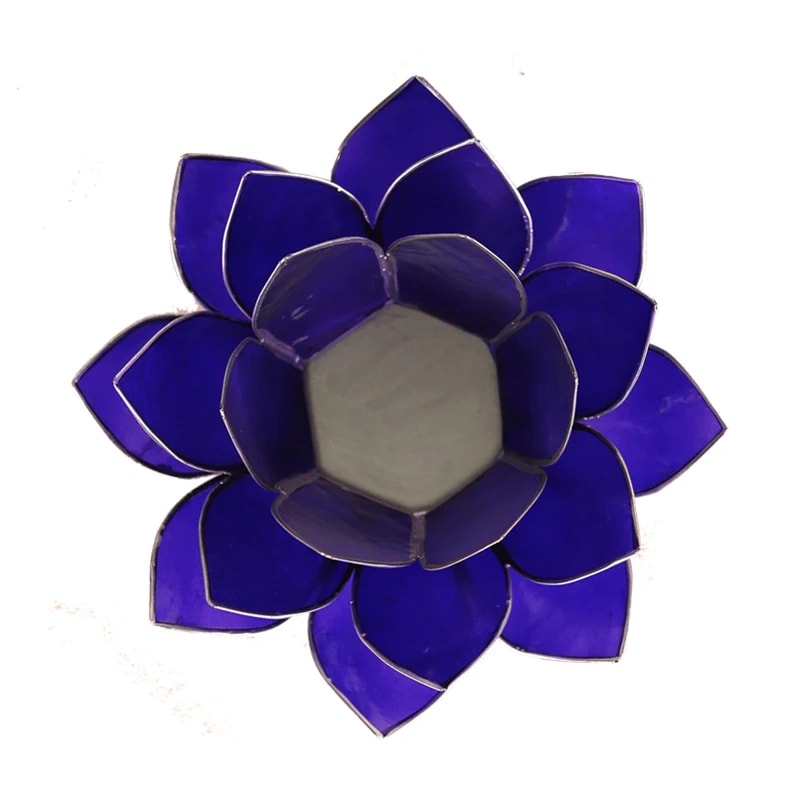 Lotus capiz sfeerlicht indigo 6e chakra afgewerkt met zilverkleurige rand. Afmeting ± 13 cm.