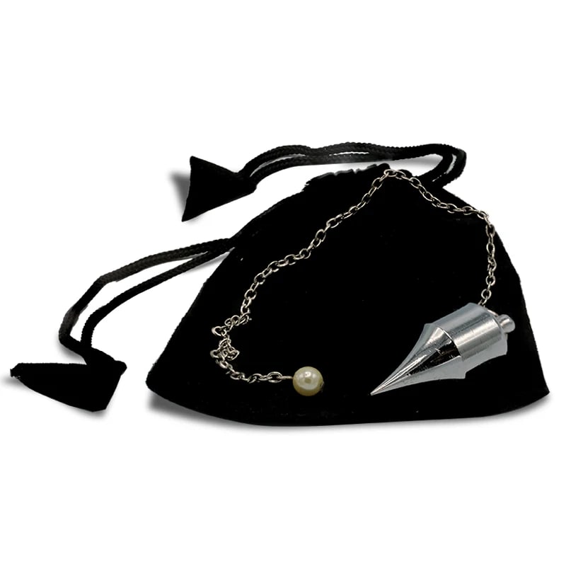 Pendel Messing Zilverkleurig verchroomd. Wordt geleverd met pendeltasje om de pendel in te bewaren.
