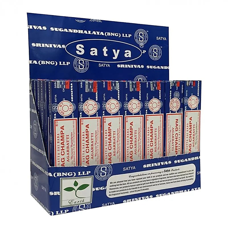 Satya Nag Champa Agarbatti wierook. Mega-box met 42 pakjes a 15 gram.