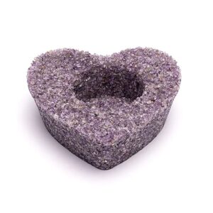 Hartvormige theelichthouder, gemaakt van stukjes amethist gegoten in epoxy.