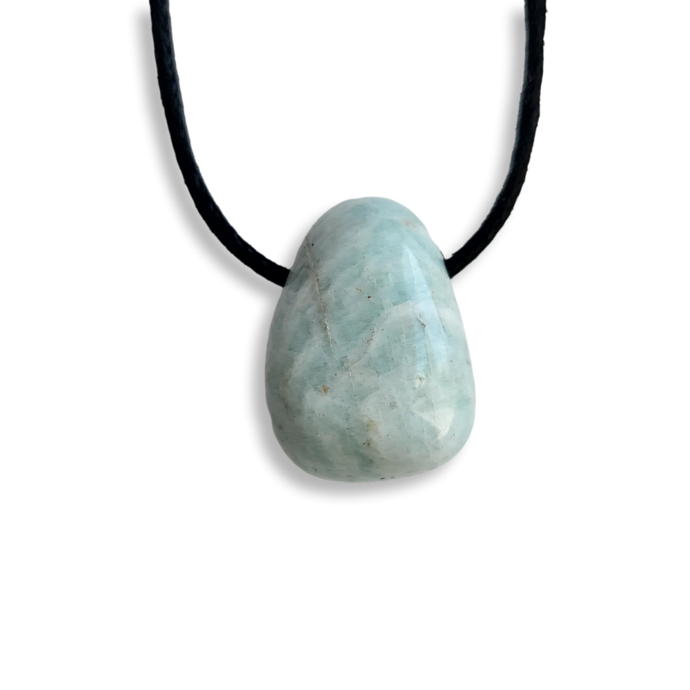 Mooie edelsteenhanger Amazoniet doorboord, geschikt voor leren koordje of waxkoord.
