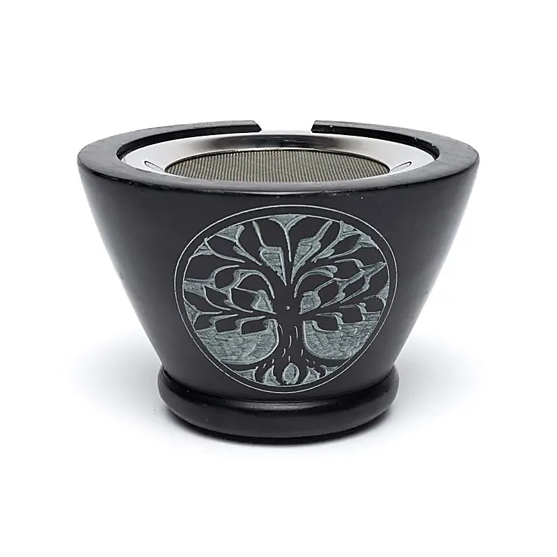 Zeepsteen wierookbrander Maroque, grijs, met rvs zeef 12½ cm.