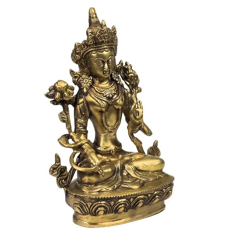 Witte Tara 20cm hoog, 1710 gram, gemaakt van messing.